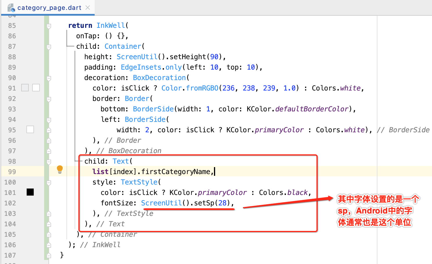 其中为啥要使用ScreenUtil不太清楚的可以参考Flutter项目实战之女装商城------导航栏添加、状态管理、屏幕适配 密码保护,其实就是为了屏幕适配。