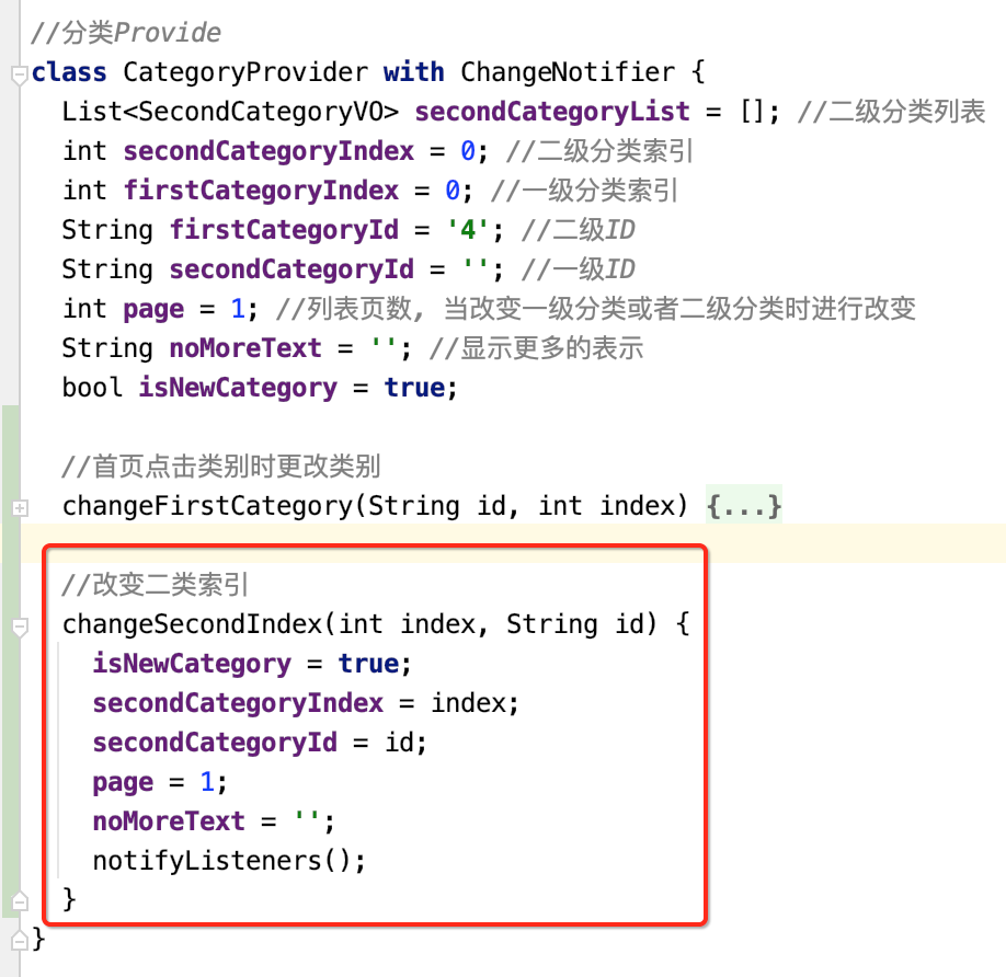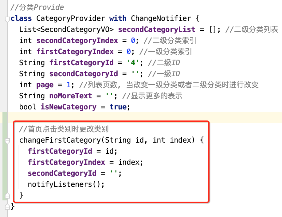 接下来再来定义一个针对点击一级分类处理的Provide的方法: