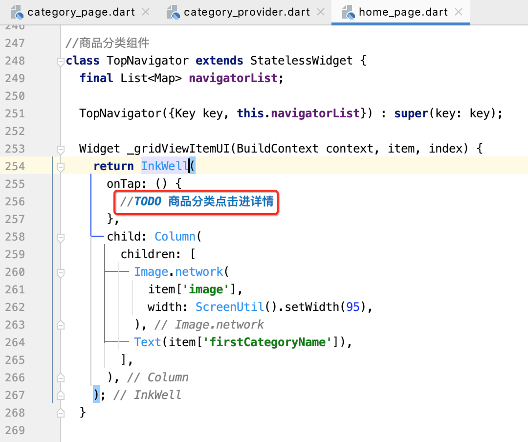 其实它就是对应的咱们目前写的分类页面,点击应该跳到指定分类的索引位置,有了Provide的封装其实也非常简单,回到首页这块的点击事件处: