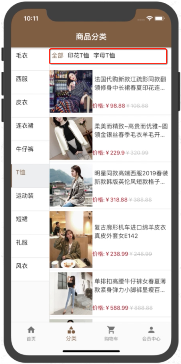 接下来则来处理一级分类点击之后二级分类的展示了,也就是这块: