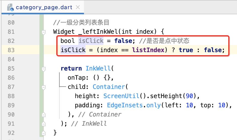 而在调用方法中,有改变firstCategoryIndex值的状态: