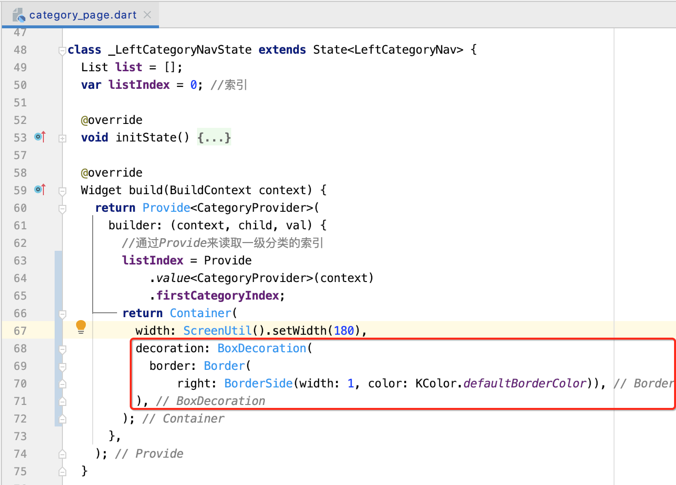 整个代码没啥好解释的,不过由于Flutter的学习也间隔有一段时间了,对其中一些感受生疏的语法再复习: