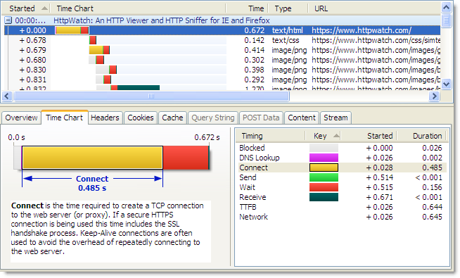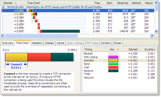 每当浏览器访问一个网站,它必须创建一个或多个tcp链接.既是在常见的http协议下,这也是个漫长的过程.使用tcp链接的有效的响应可以减少这中开销.下面来自httpwatch的图表显示在访问英国一网站时tcp连接时间大约130毫秒