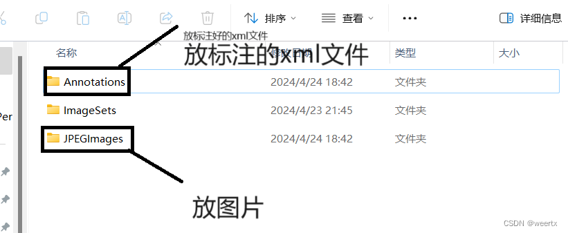 2.将图片和标注后产生的xml文件放进文件夹中。
