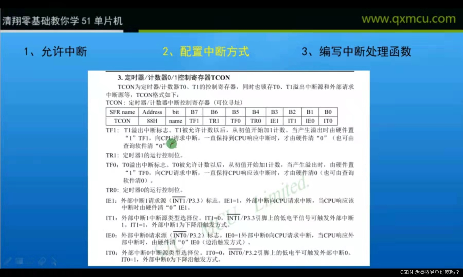 这3个内部中断源的控制位分别锁存在特殊功能寄存器TCON和SCON中