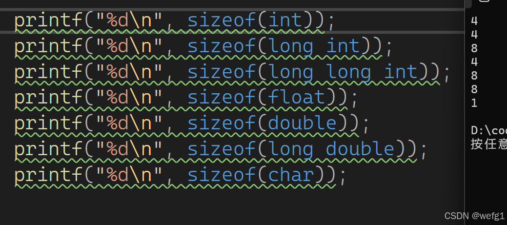 对于 unsigned char (无符号字符型)最高位不再表示符号,此时 8 个 bit 位都表示数值,所以 unsigned char 的取值范围是 0 到 255 ,其他类型,如 unsigned int 类型也可以依此类推。