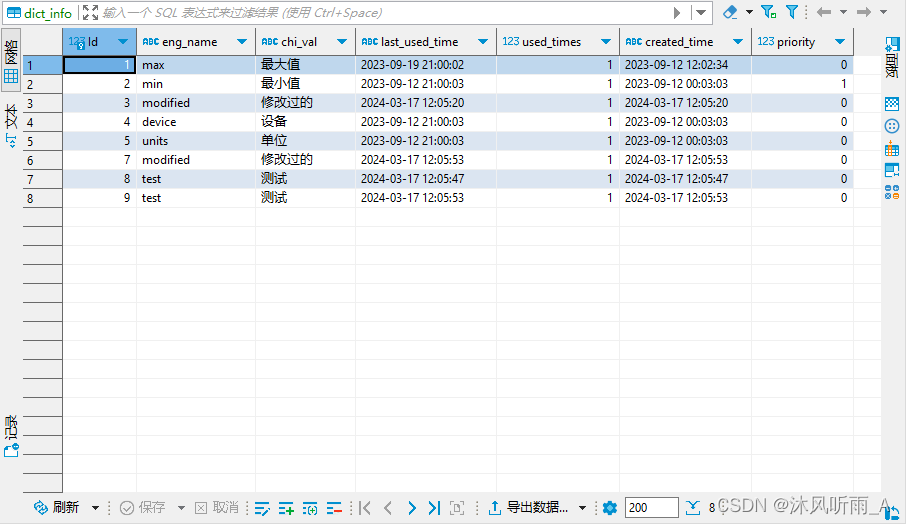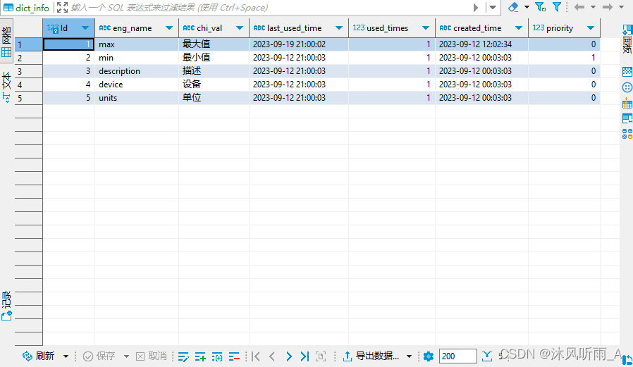 String sql = "INSERT INTO dict_info (eng_name, chi_val, last_used_time, used_times, created_time, priority) VALUES (?, ?, ?, ?, ?, ?)";