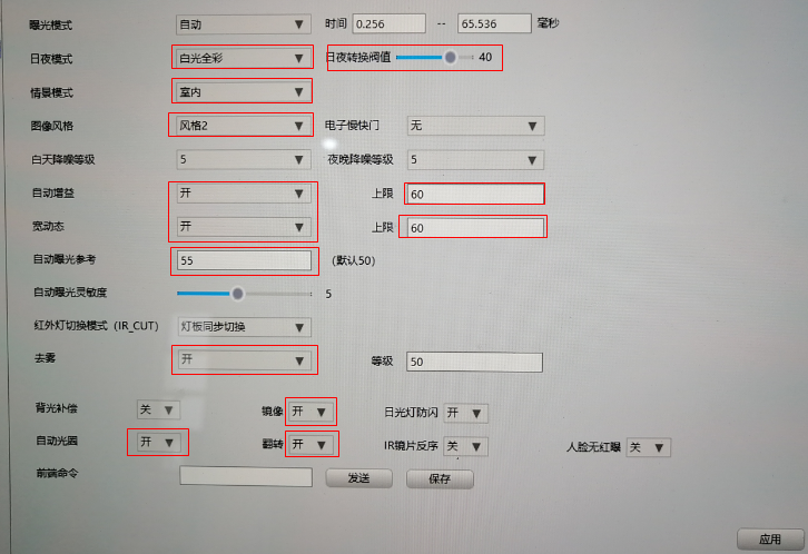 8、摄像机参数设置,根据实际使用情况和环境调整参数。