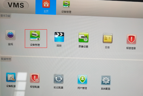 1、打开VMS,VMS可以去官网下载。选择设备管理。