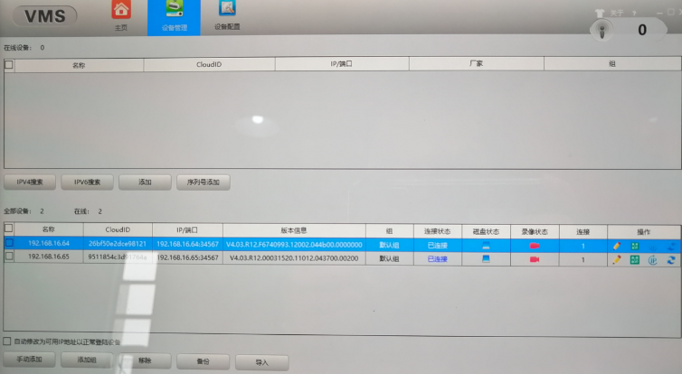 5、如果设备链接正常,会显示IP地址、端口号和版本信息以及录像状态。