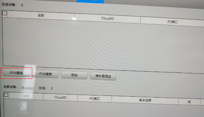 2、点击IPV4搜索,如果设备链接状态正常,就可以搜到设备。