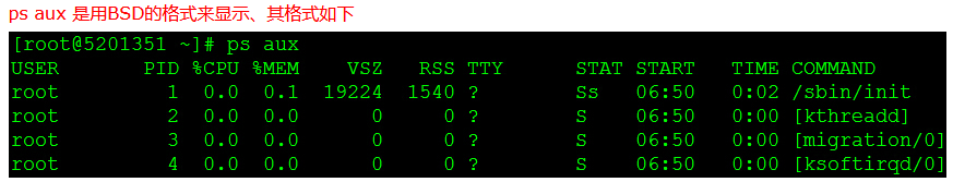 显示的项目有:USER , PID , %CPU , %MEM , VSZ , RSS , TTY , STAT , START , TIME , COMMAND