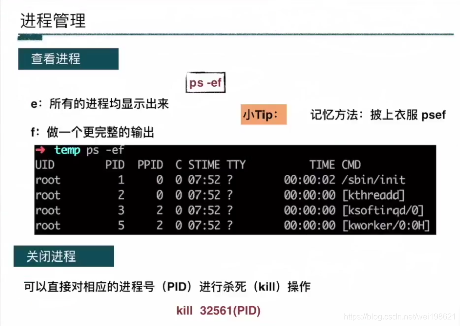 显示的项目有:UID , PID , PPID , C , STIME , TTY , TIME , CMD