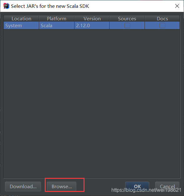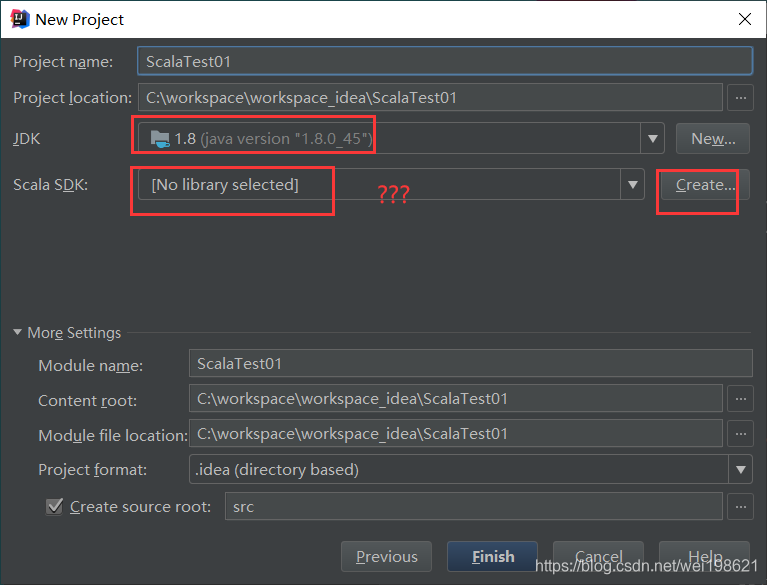 注意:第一次创建工程时,SDK是不存在的,需要点击Create自行找到前面Windows下安装的Scala