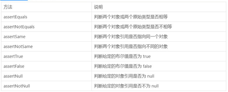 用来对测试需要满足的条件进行验证,这些断言方法都是org.junit.jupiter.api.Assertions中的静态方法,