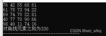 /*求5行5列二维数组主对角线(从左上角到右下角)上元素之和。*/