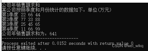printf("公司年销售额求和\n某公司按照季度和月份统计的数据如下:单位(万元)\n");