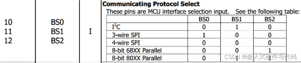 模块的通信接口是通过BS0,BS1,BS2三个管脚来配置的。