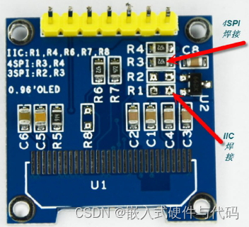 0.96寸OLED显示屏裸屏是支持五种不同接口的,除了前面的三种还有6800、8080 并口方式;由于这两种接口占用数据线比较多; 而且不太常用, 所以模块在设计的时候没有引出来。