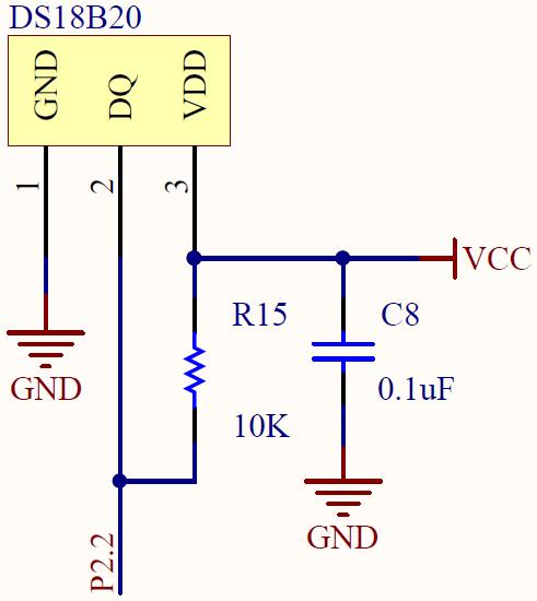 4、工作电源: 3.0~5.5V/DC ,DS18B20温度传感器可以采用外部独立电源供电,也可以用数据线寄生电源供电。