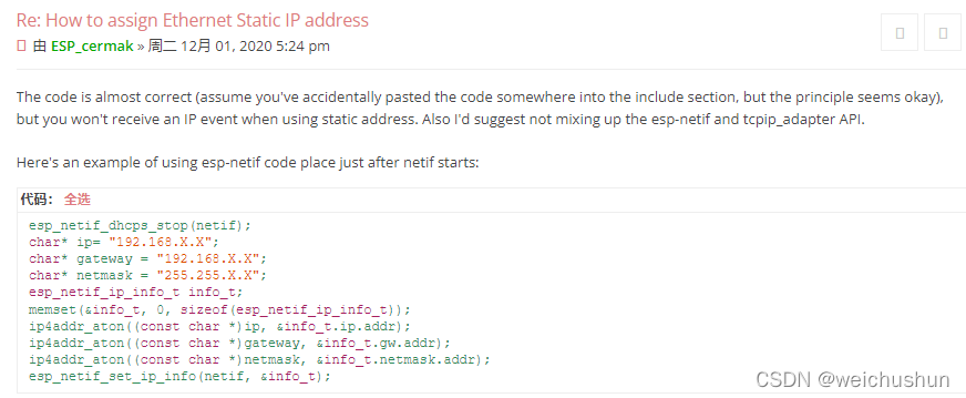 Esp32-Ethernet-kit_A_1.2以太网设置静态ip,windows与板子ping通_Linux_zhicheng的博客-优快云博客_esp32静态ip