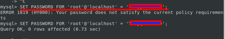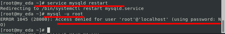 5-- Start mysql server and set password for root or other users. Startup mysql with this command: service mysqld restart
