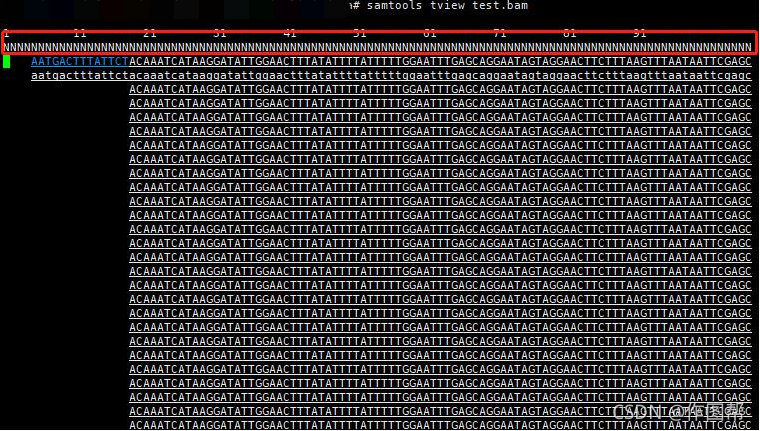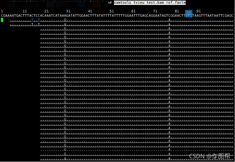 tview能直观的显示出reads比对基因组的情况,和基因组浏览器有点类似。