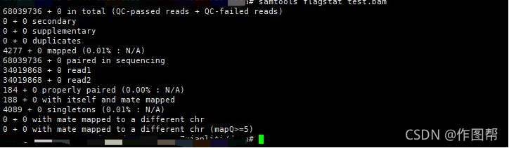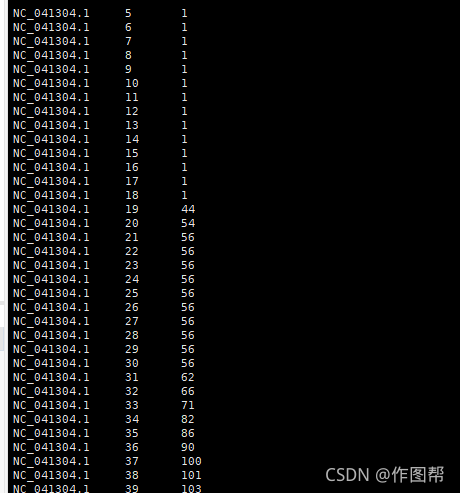 得到每个碱基位点或者区域的测序深度,并输出到标准输出。depth命令计算每一个位点的测序深度并在标准显示设备中显示。注意:使用此命令之前必须先samtools index。