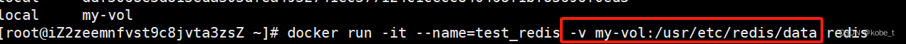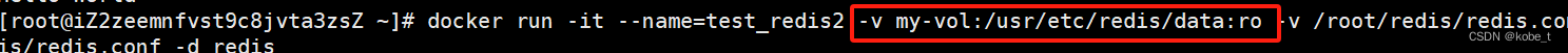 docker run -it --name=test_redis3 --mount source=my-vol,target=/usr/etc/redis/data -v /root/redis/redis.conf:/usr/etc/redis/redis.conf -d redis