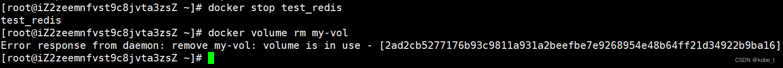 那这个时候我们来卸载一下这个绑定关系:docker volume rm my-vol