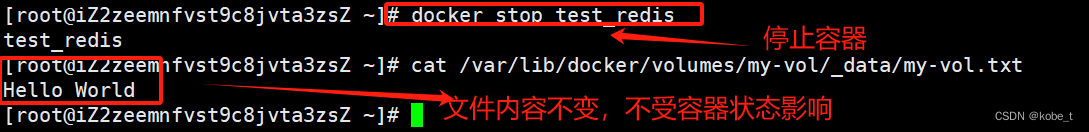 可以在刚才的例子里面验证一把,在my-vol.txt文件里面写入一个"Hello World!":