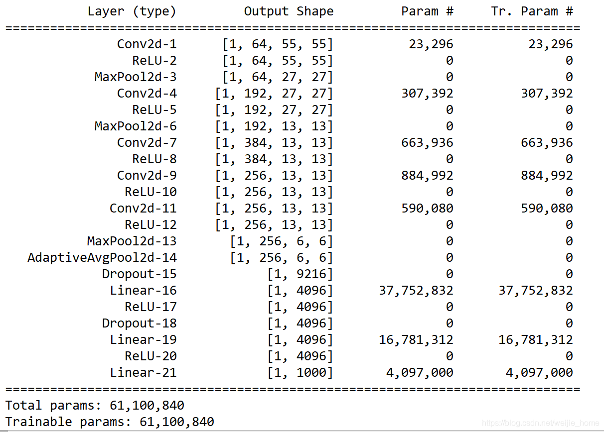 | AlexNet | 60百万(1e6) | 240MB | 720 (1*3*224*224) |