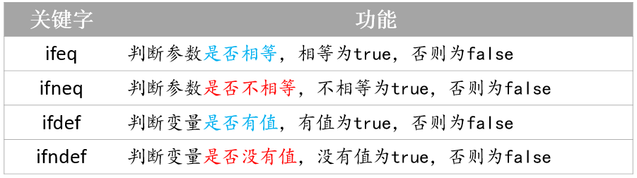 (2)注意事项:条件判断语句只能用于控制 make 实际执行的语句 ; 但是不能控制规则中命令的执行过程。
