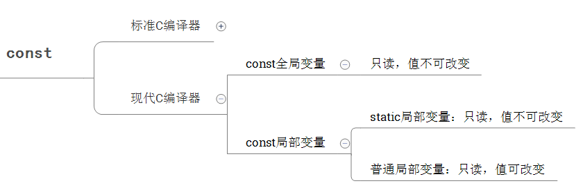 (2)现代C 编译器中的const 将具有全局生命周期的变量存储于只读存储区