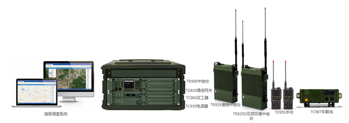 以便携式中继设备为例,可以实现和常规同频中继台、异频中继台、跨段中继台、脱网终端配套组网满足不同的应用场景,以指挥车为中心作战服务半径5-10公里左右,中继设备作现场作业范围信号覆盖,多种通信方式作回传,主要用于城市和郊区的日常救援。同时可用于应急车无法抵达的地震、山岳、水域等救援。解决分队对上通倍问题为主、分队内部单兵战术通倍问题为辅,重点满足整个通信网覆盖到最后一公里的需求