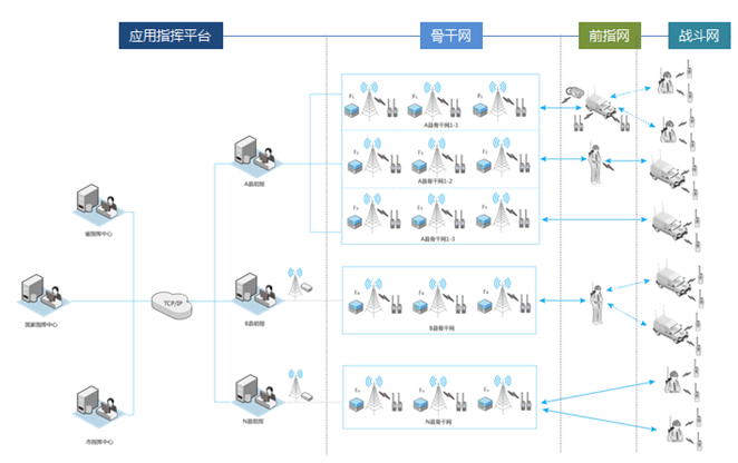 北峰BF-9000BMC任务关键型应急指挥通信系统由业务体系、无线通信技术与GIS信息平台、RFID识别技术组成,业务体系即层组网(骨干网、前指指挥网、战斗网)、3级指挥(基指、前指、分队)、3种应用(日常勤务、应急作业、跨区支授)。信息平台由技术标准规范、信息资源、网络通信平台、应用系统、各级中心集成等构成。从而,打通一线救援作业与现场指挥、各级指挥中心、联动部门、受灾单位等要素间的指挥联络通道,进行实时沟通、联动指挥、现场支持等功能的应急指挥系统。