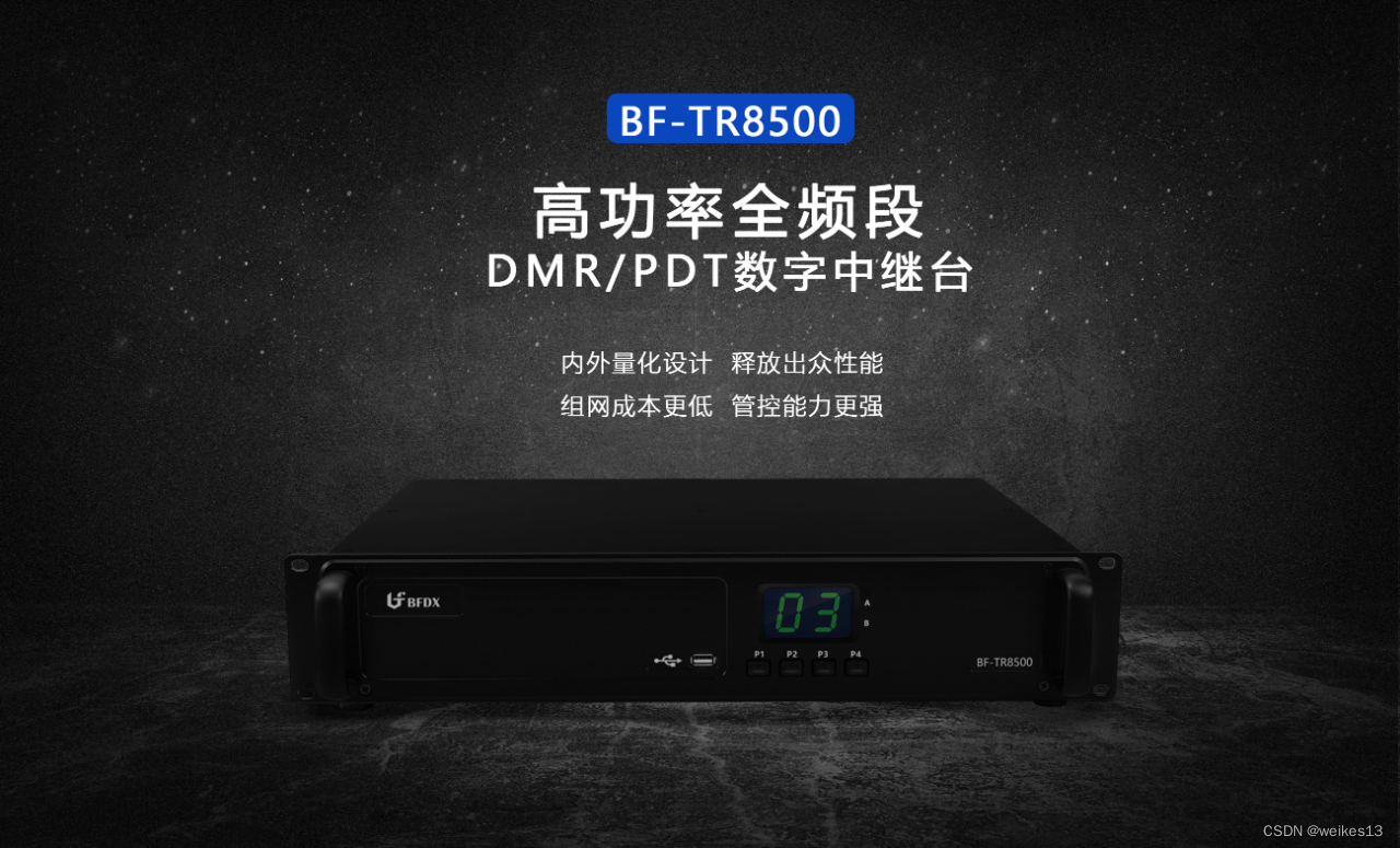 BF-TR8500全频段数字中继台基于DMR/PDT协议、精心打造的一款全频段高功率数字中继台其除了拥有丰富的应用功能,同时可根据不同场景需求进一步优化,实现IP互联、(SDC)智能平台调度、同频同播、SVT等多版本选择,有效解决大区域网络覆盖、常规单基站通信、多基站组网、跨区域指挥调度、频率资源紧缺等问题,满足任意常规或集群通信方案下的严苛要求。