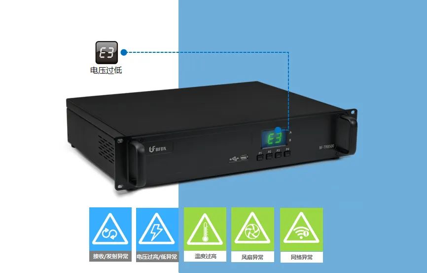 当BF-TR8500中继设备在应对运行中可能出现的各种问题时,其故障告警系统能及时反馈设备的运行状况自动对运行中所发生的各种异常故障信息进行提示让工作人员能及时故障原因、使设备始终处在良好的运行状态、有效的延长设备使用寿命、保障通信服务的正常作业。