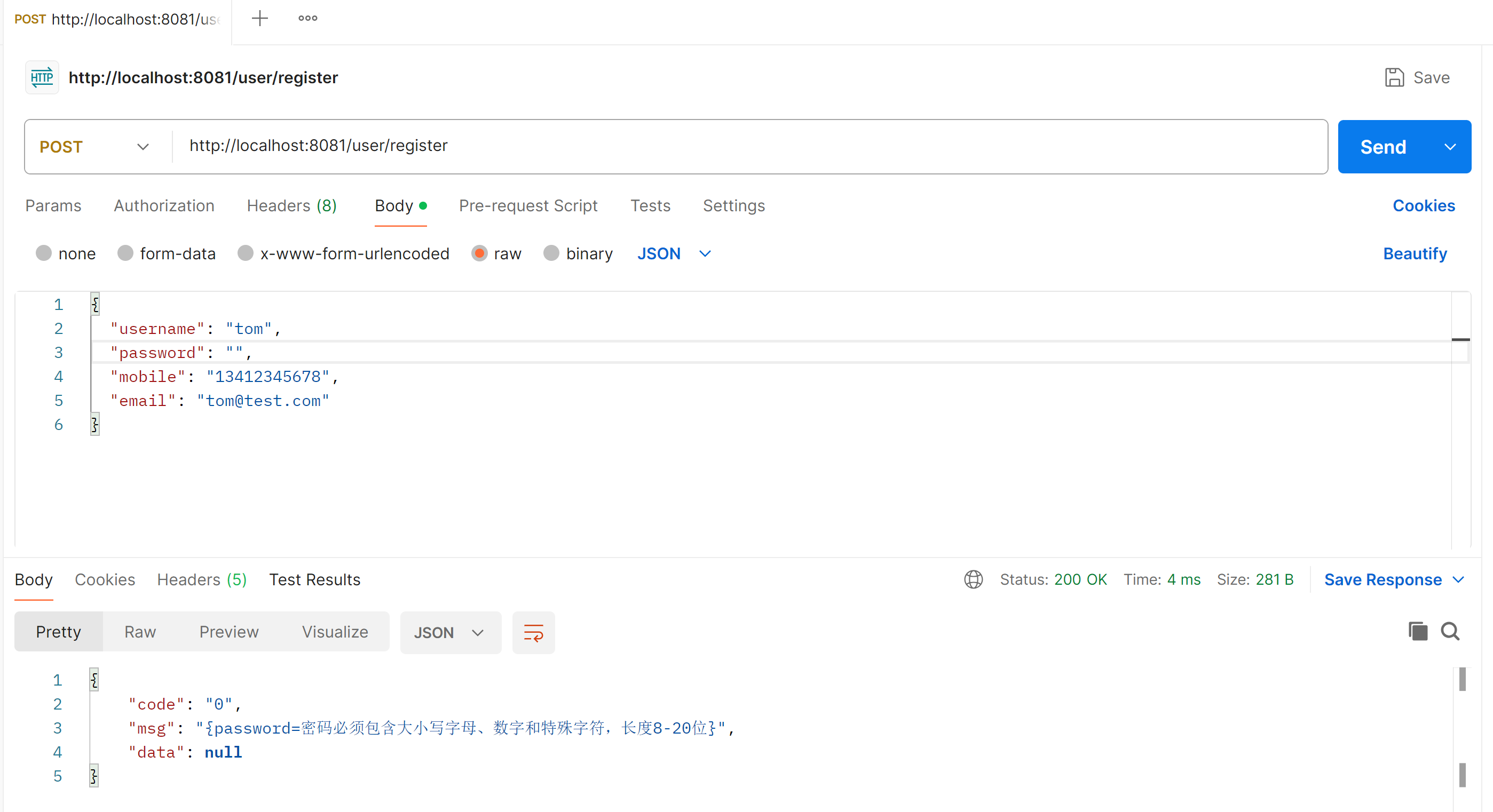public Result<String> register(@Valid @RequestBody User user, BindingResult bindingResult){