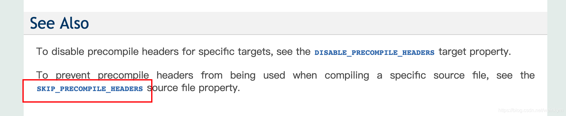 于是我们点击进入SKIP_PRECOMPILE_HEADERS文档
