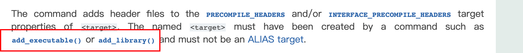 本文主要记录在cmake环境下支持precompile_header的配置。通过参考cmake官方文档(target_precompile_headers — CMake 3.16.9 Documentation)可以看到,目前支持add_executable() or add_library() ,且不能是别名 ALIAS target.