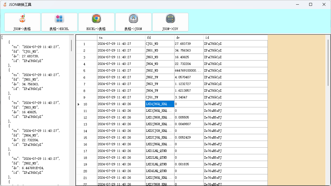 1、json字符串转为表格,可以直观的展示,也可以复制,并支持转换后的表格点击列头进行排序,比较方便地定位数据。