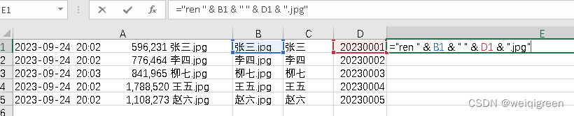 6.使用excel函数,生成重命名的cmd命令行。