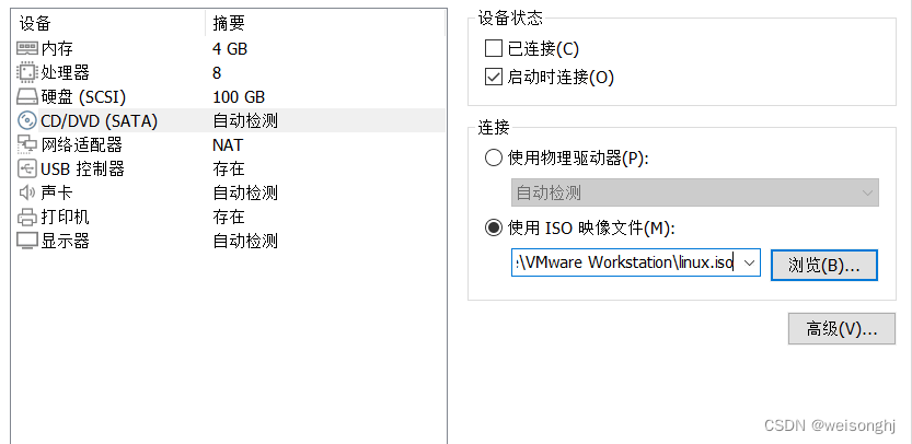 首先我按照正常的配置vmware-tools进行操作,在CD/DVD中添加打开下载配值路径中的VMwareWorkstation里找到linux.ios镜像文件。注意这里的vmwareworkstation在你下载时选择的下载路径中。