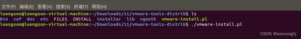 将文件提取,在提取后的文件中运行./vmware-install.pl文件