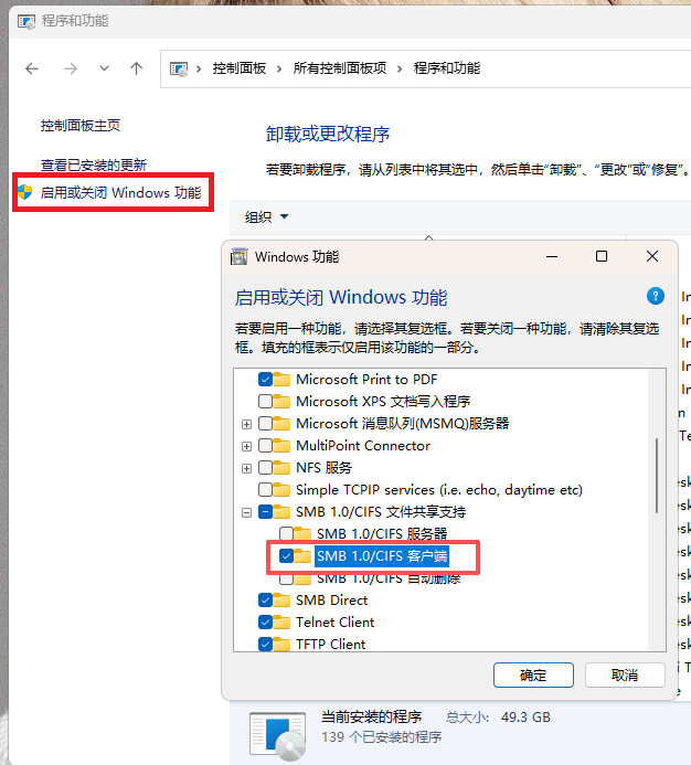 1、先安装SMB 1.0