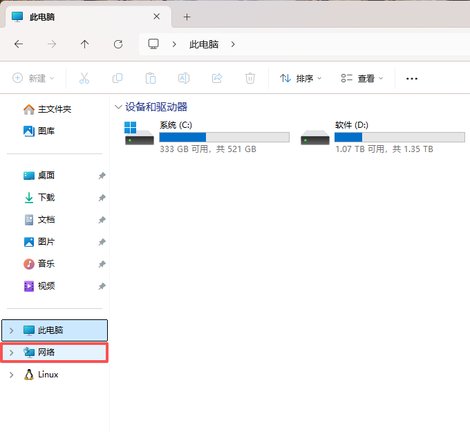 打开”我的电脑” 或 “此电脑“,点击”网络“,可以看到共享打印机的主机了!