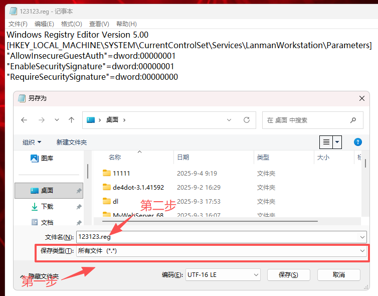 保存类型选“所有文件”,关键是后面要加上“.reg”,然后保存。