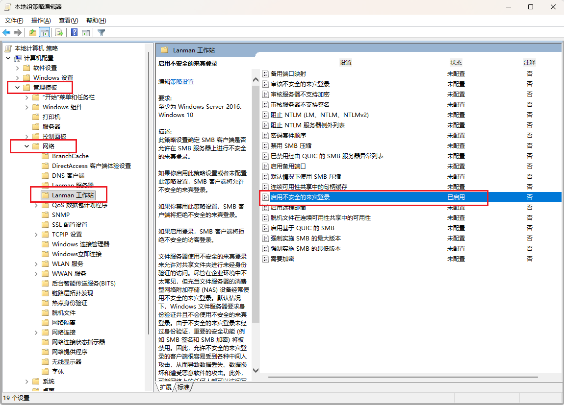2、启用不安全的来宾登录