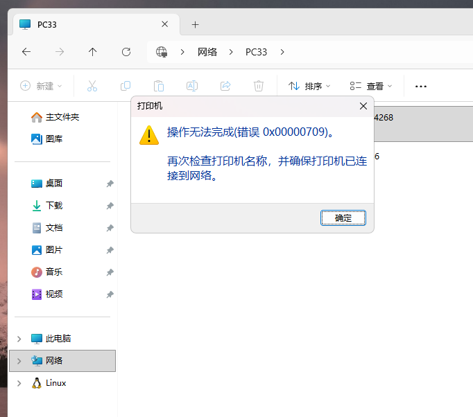 双击共享打印机的主机,出现下面报错!
